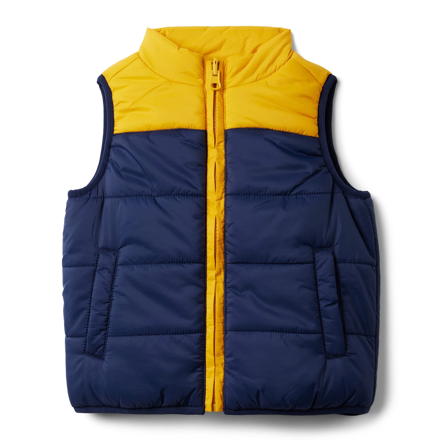 - Protect your little one from windy weather in the Janie and Jack® Blocked Puffer Vest and let them enjoy while staying warm.