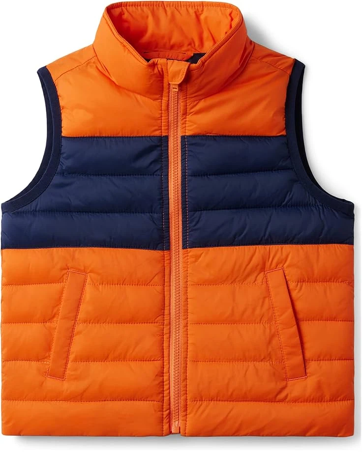 Janie and Jack Kids’ Apparel SKU: #9850907Janie and Jack® Nylon Puffer Vest the layer we love, this soft puffer vest is a season staple. High neck full front zipper closure.Sleeveless vest style.Color blocking for a classic vibe.Front hand pockets.Straight hemline.Fully lined. 100% nylon puffer.Lining: 100% polyester.Machine washable.Imported.